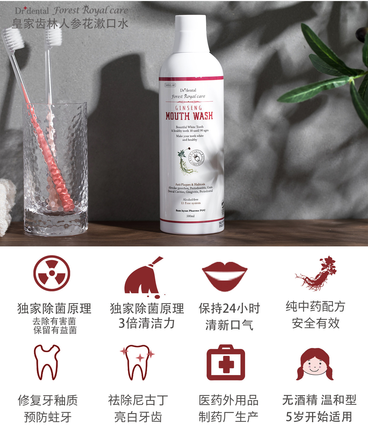 皇家齿林人参花漱口水 500ml/瓶*3 产地1 韩国 赠品2 皇家齿林人参花漱口水便携装 12ml*10/盒*1 产地2 韩国 公司,品牌介绍 皇家齿林研发团队历经10年探索,将甄选的人参、红参等原料在特定环境晾晒、风干后,利用古代研磨及熬制工艺提炼其精华,研制出的 日本漱口水哪一款好用?gum怎么样? gum漱口水杀菌效果怎么样? gum漱口水改善口臭效果怎么样? gum漱口水怎么样? 早晨起来,口腔粘腻,有木有什么好办法;